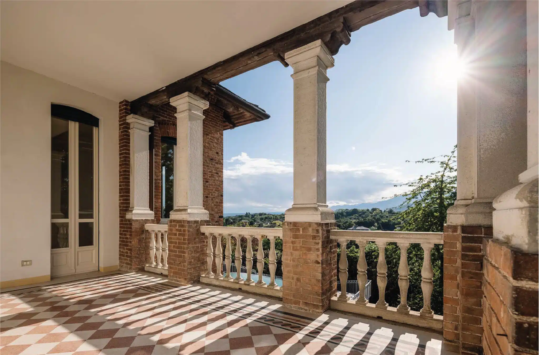 Just four steps to cross the threshold and be welcomed by a soft light that, from the large windows, expands in every room discovering design details that dialogue harmoniously with the Liberty style of architecture. The time spent in this stracasa will be precious because this house is perfect for hosting family and friends’ reunions thanks to the significant space available: seven bedrooms and six bathrooms, a gym to keep fit, the raised outdoor pool that allows a spectacular view of the Alps, a covered terrace on the top floor and one open air on the third floor where you can relax alone or in good company.